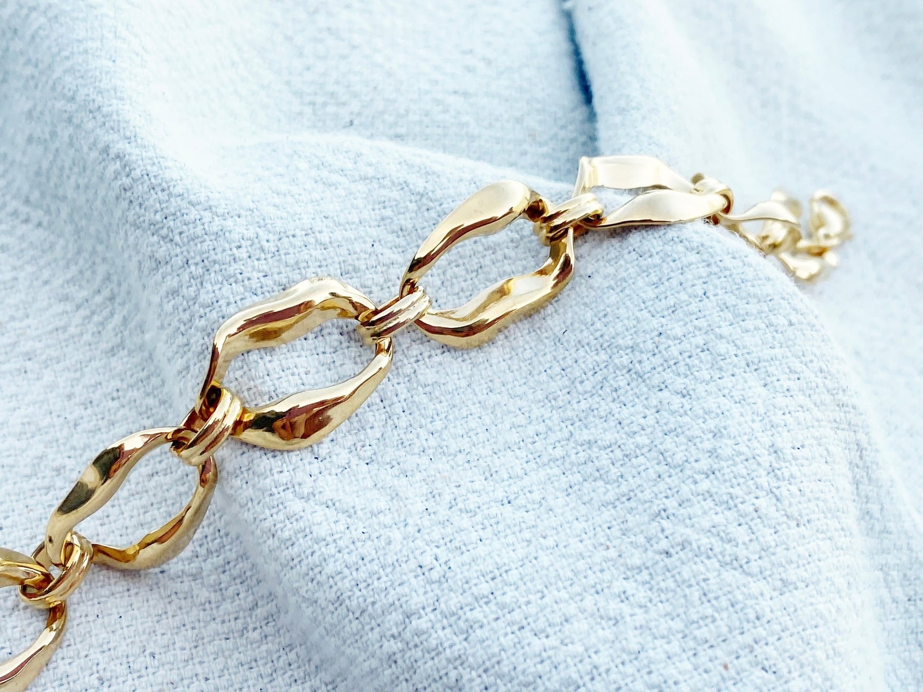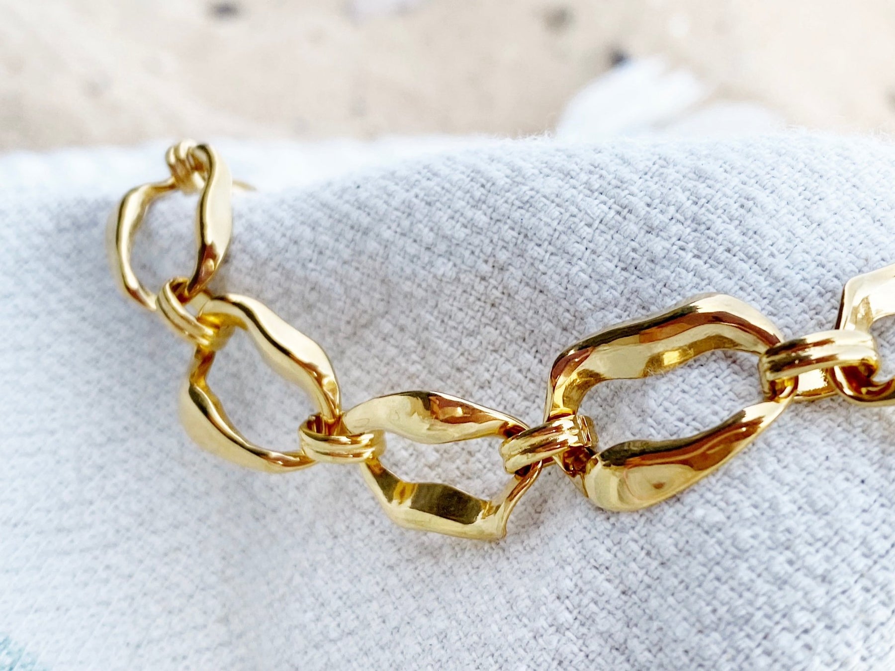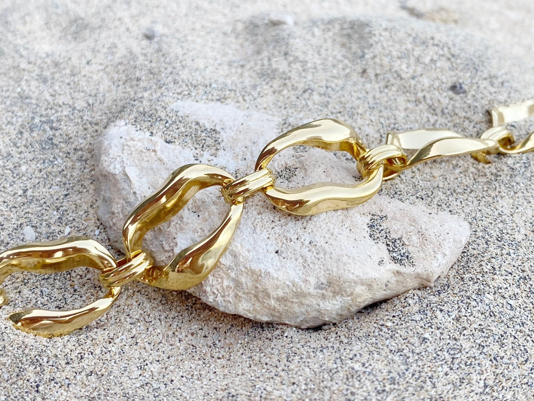 Ein bisschen retro, ein bisschen boho - und absolut angesagt ist das wasserbeständige chunky Goldarmband mit den großen Gliedern!