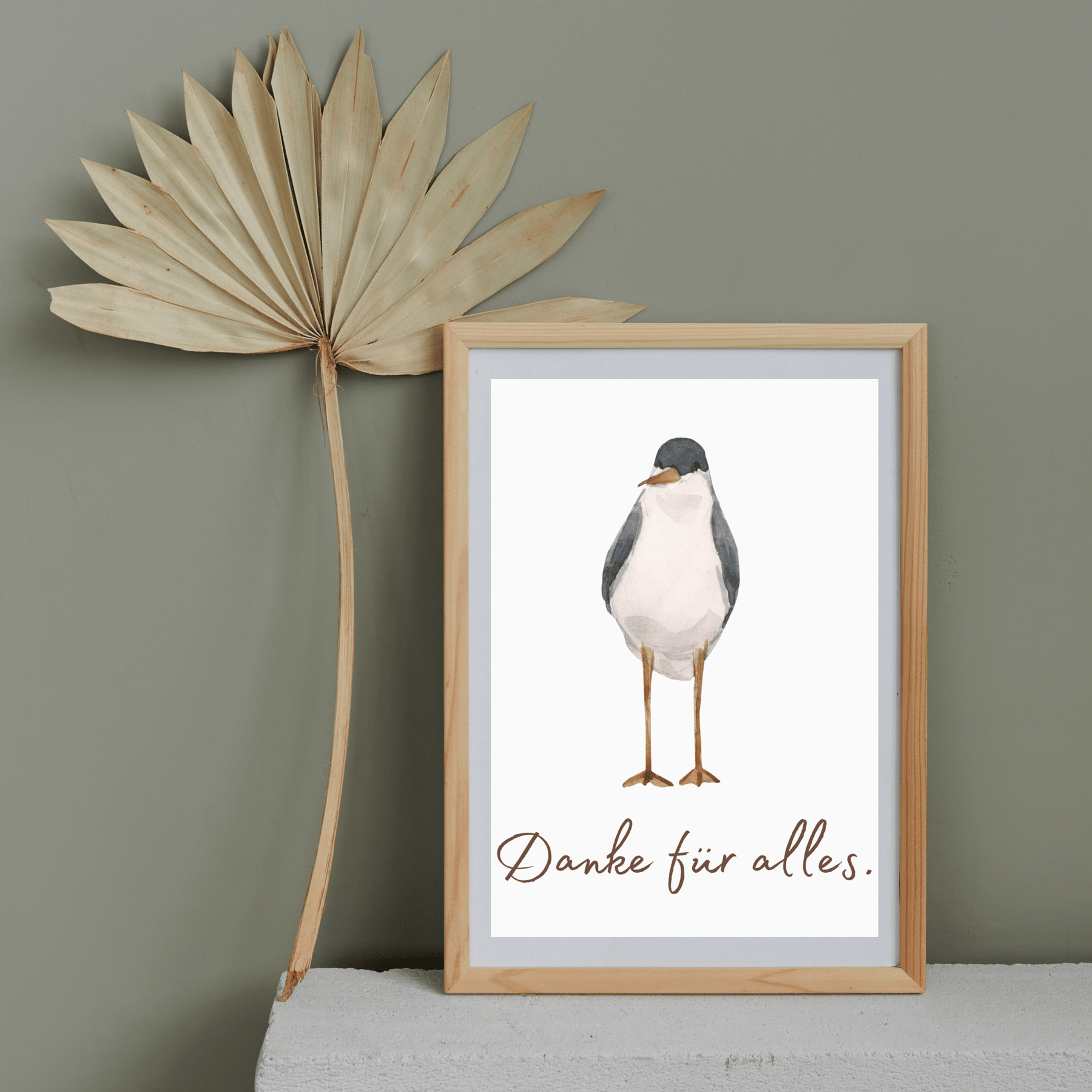 Maritime Dankeskarte mit süßer Aquarell Zeichnung und Schriftzug, ohne Rahmen.