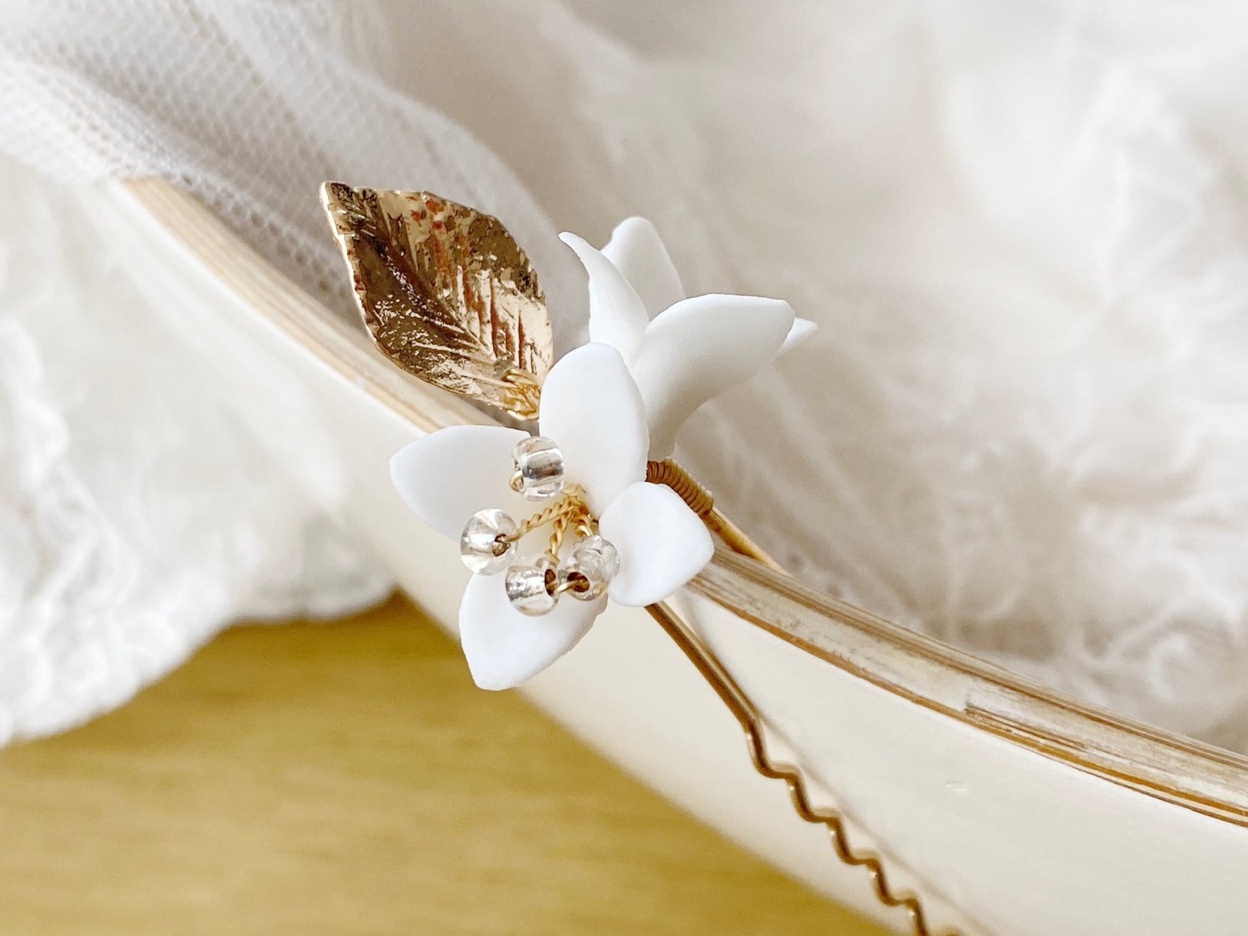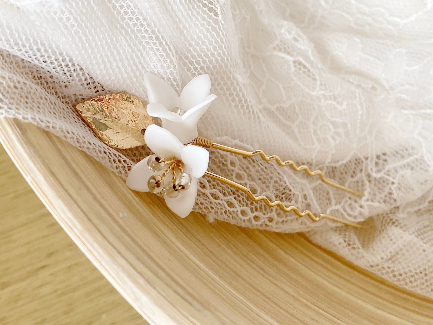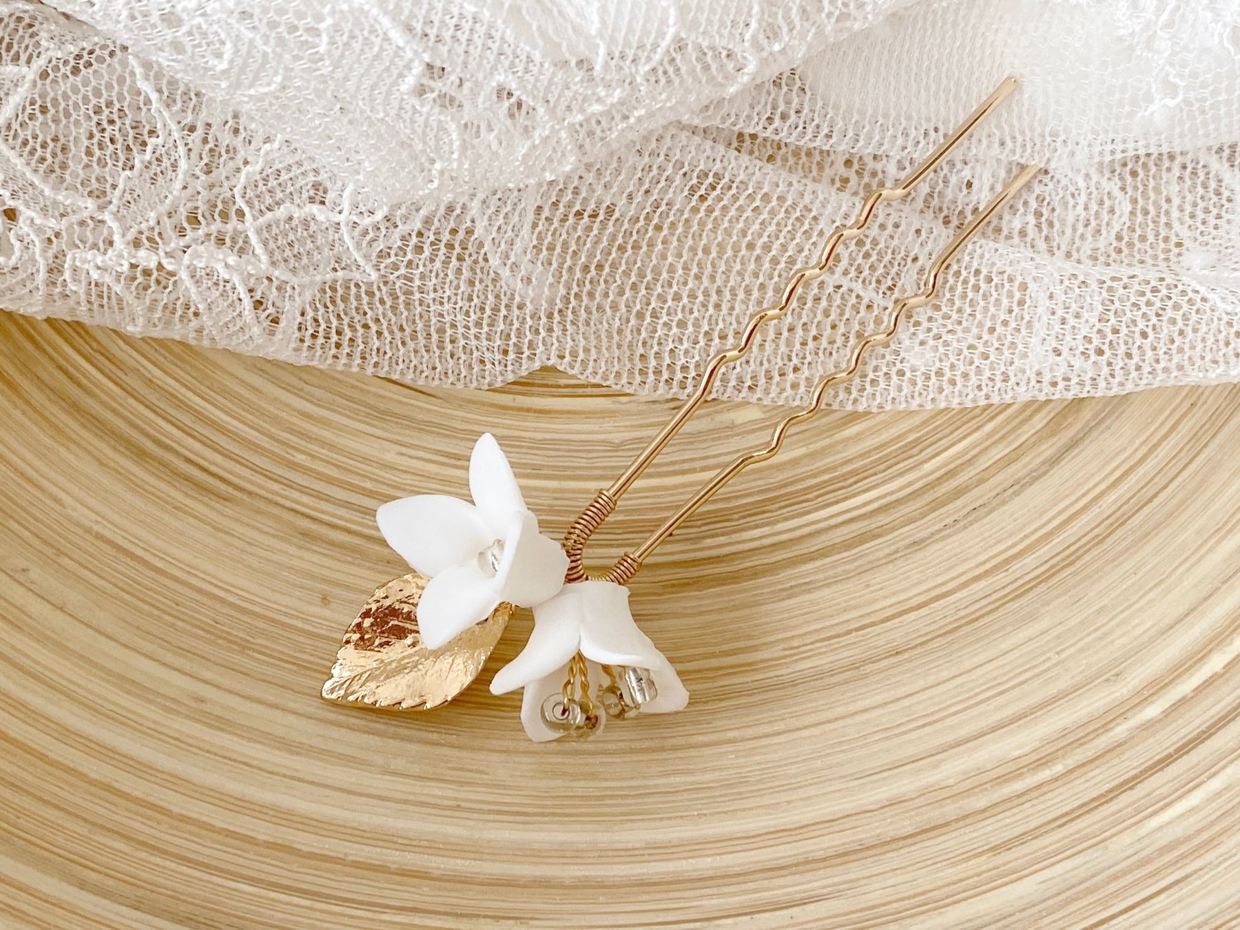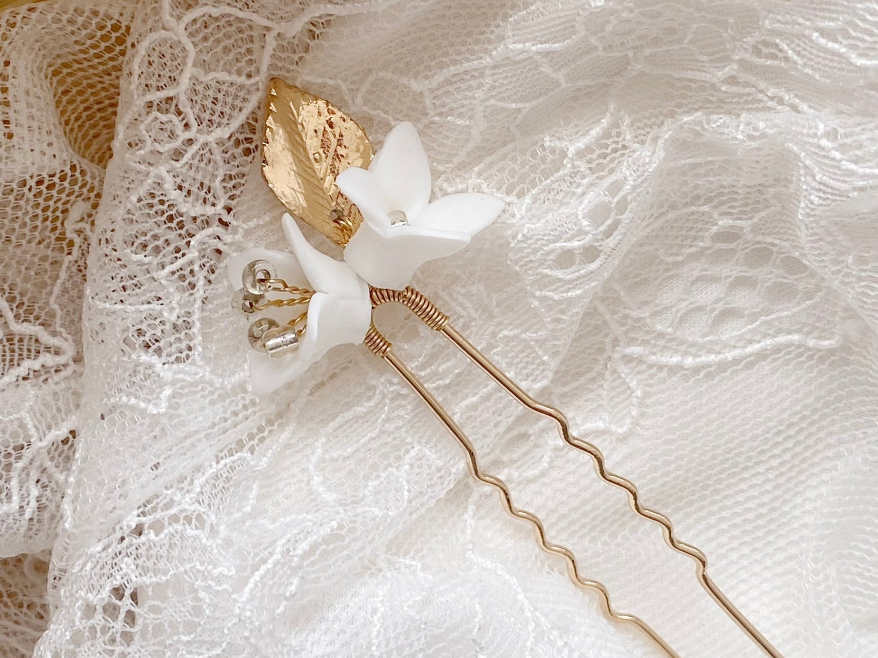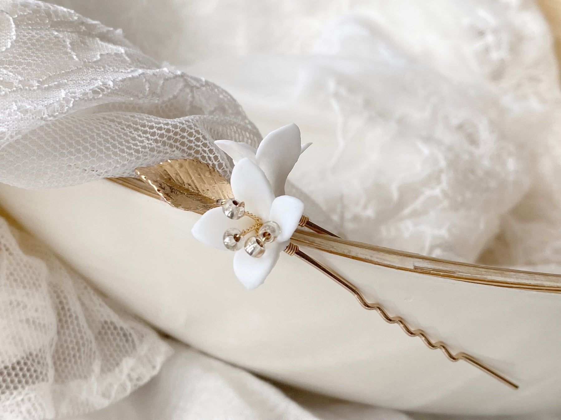 Die zarte Haarnadel aus der Accessoirelinie Aurelie lässt sich solo in deine Brautfrisur einarbeiten oder zusätzlich zum großen Brauthaarkamm tragen. Auch als Geschenk für deine Blumenmädchen oder Trauzeugin ist die Nadel ein süßes Accessoire.