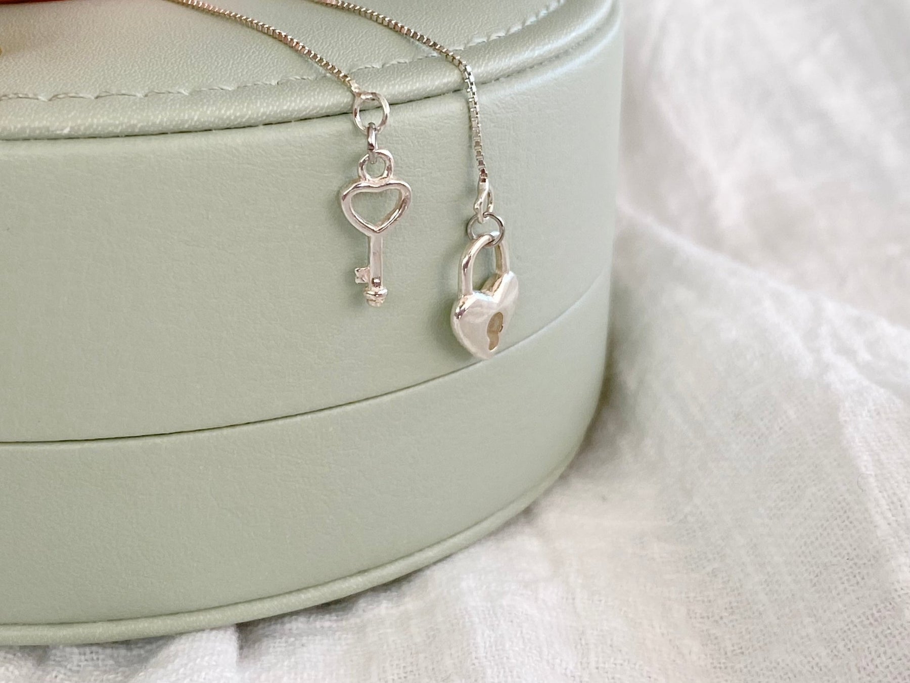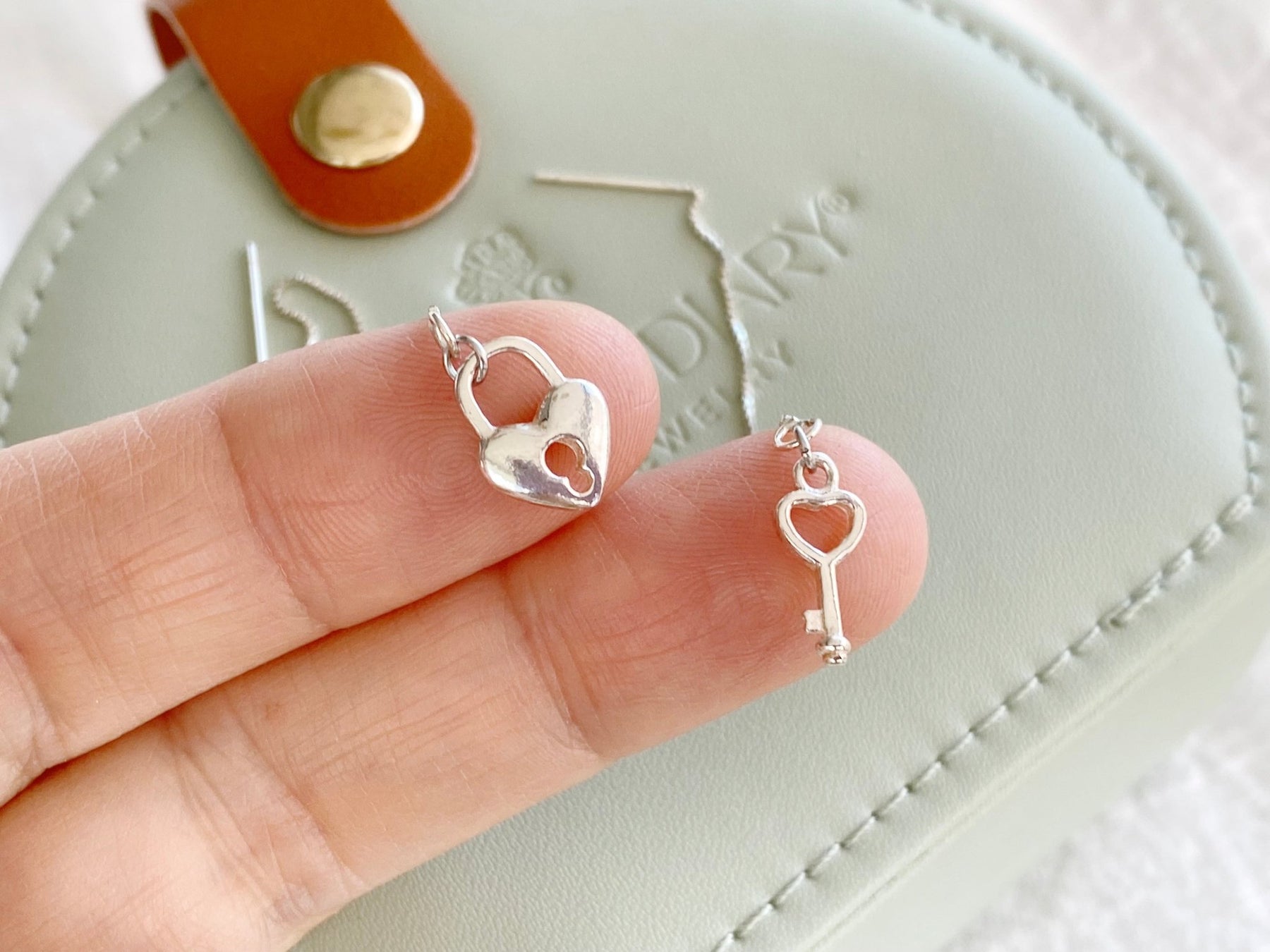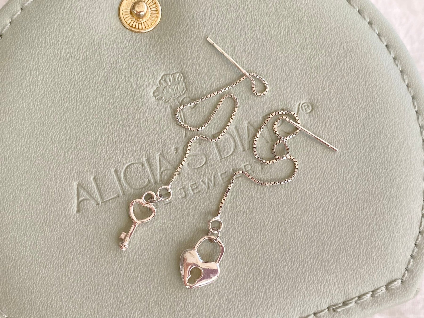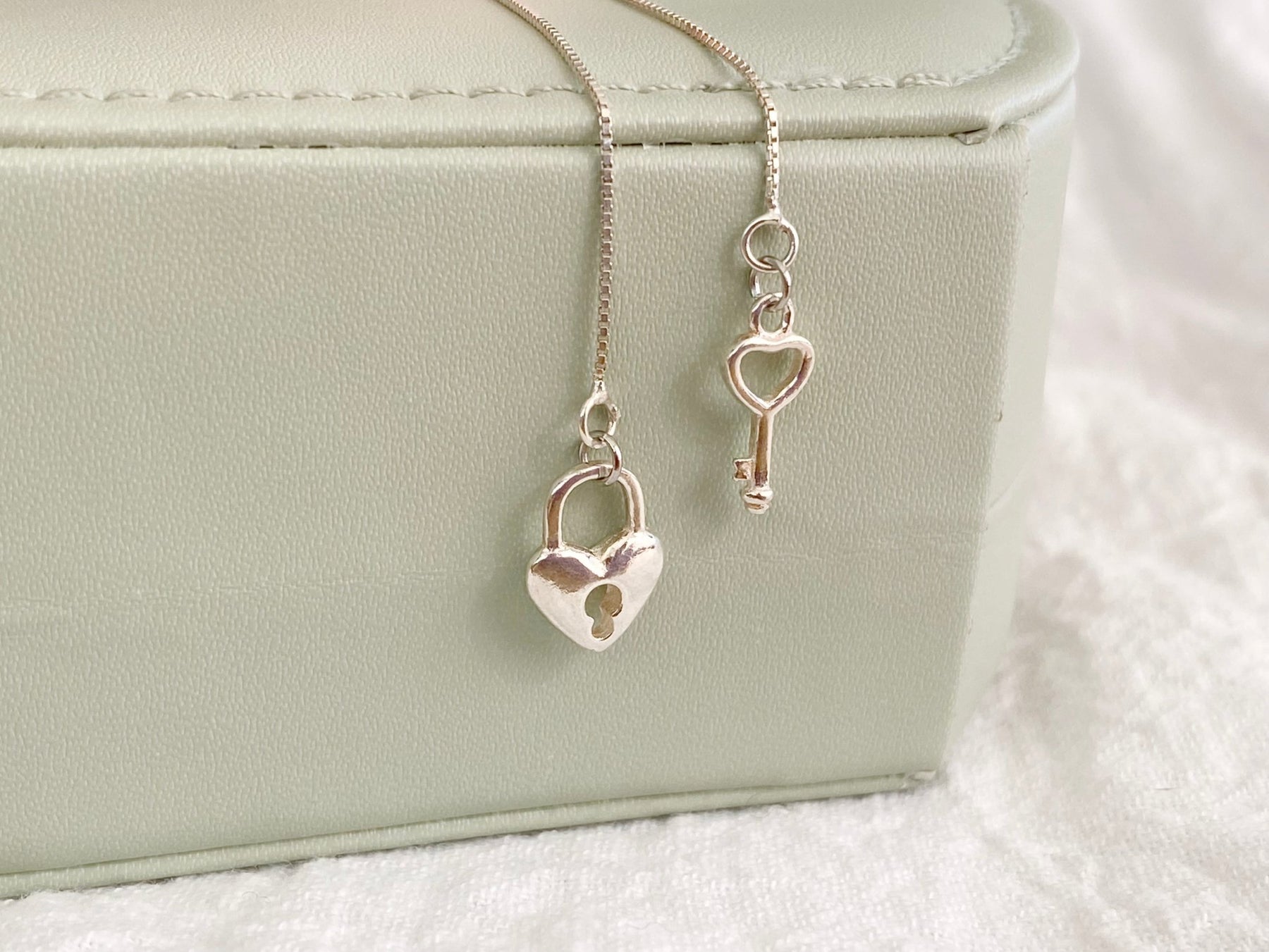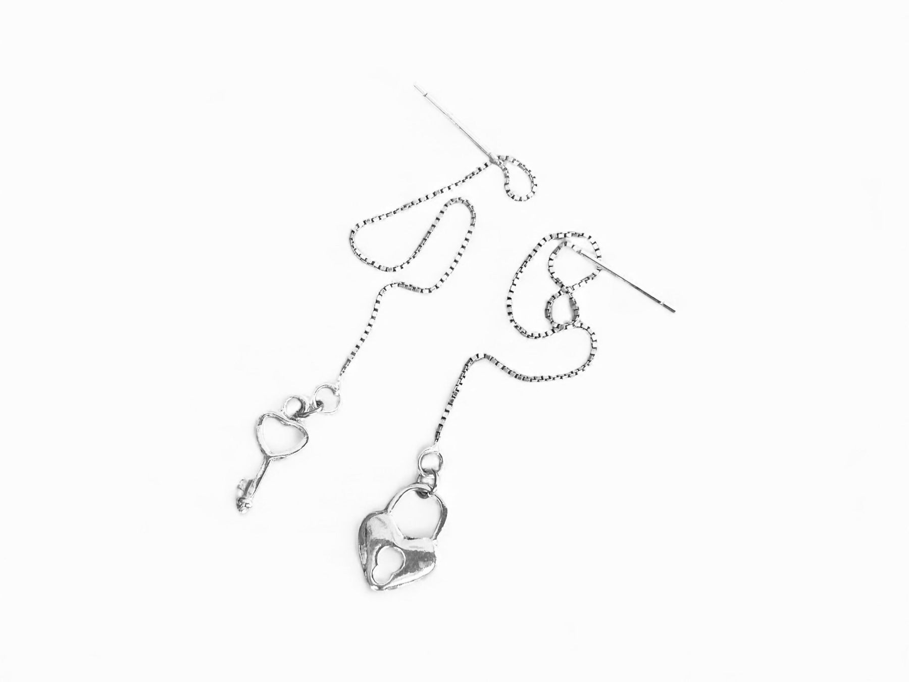 An feinen Silberkettchen hängen Schloss und Schlüssel in romantischer Herzchenform! Ob als Liebeserklärung oder als Freundschaftsschmuck - die Silberohrringe schwingen bei jeder Bewegung an deinem Ohr und sind nicht nur wunderschön, sondern auch absolut sanft zu deiner Haut!