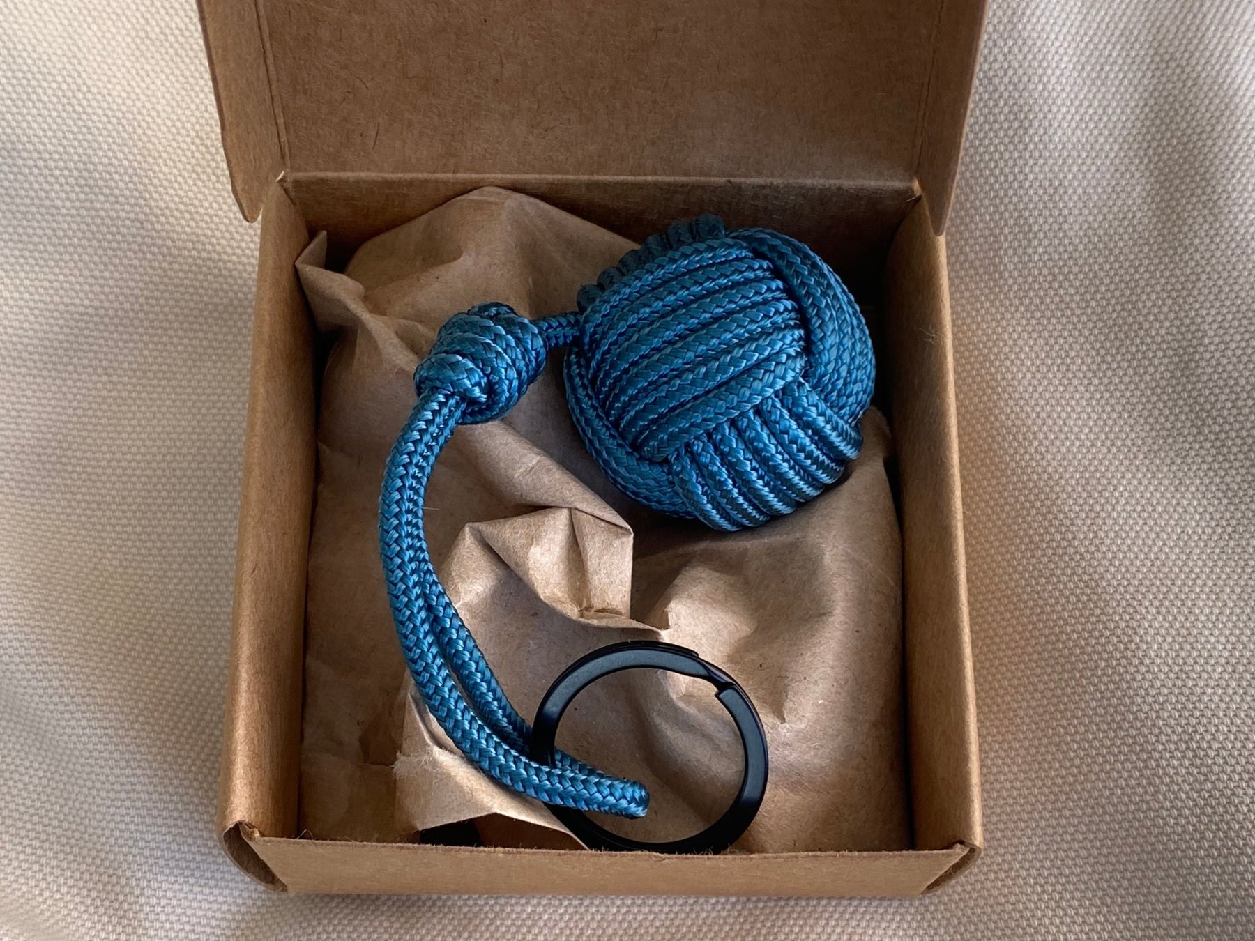 Der Schlüsselanhänger kommt in einer naturfarbenen Geschenkschachtel aus Kraftpapier zu dir, in der er auch direkt verschenkt werden kann.