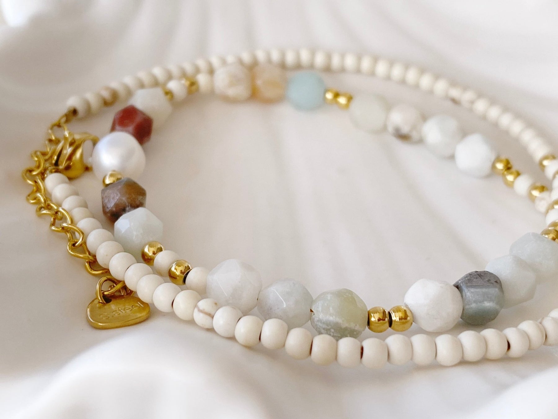 Material: Edelstahl, 18k Gold, Natursteine