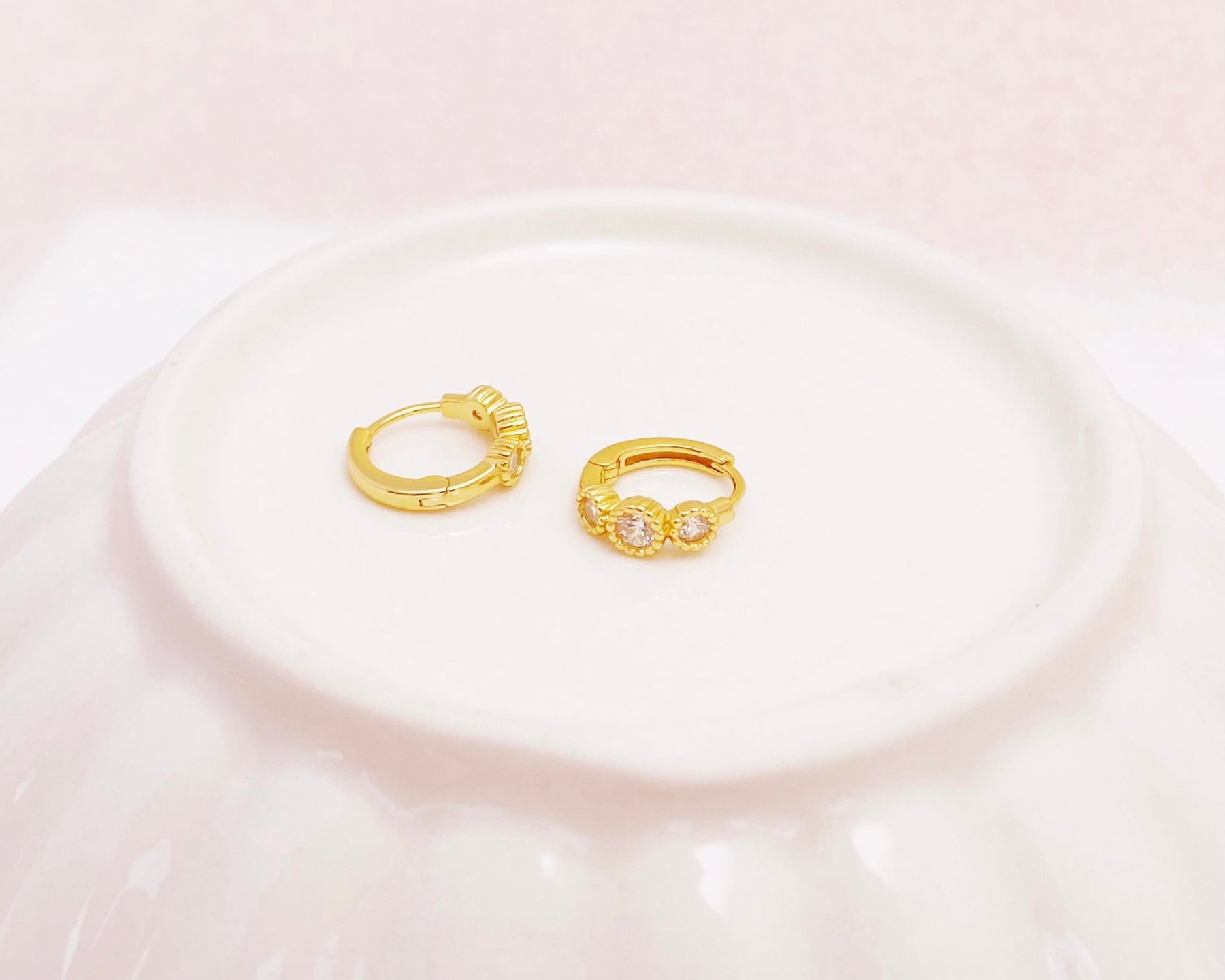Zierliche goldene Kristall Huggies Creolen: Die kleinen mini Ohrringe sehen sowohl in den unteren als auch in den oberen Ohrlöchern wunderschön aus - wahre Alleskönner, die flexibel deinen Style unterstreichen!