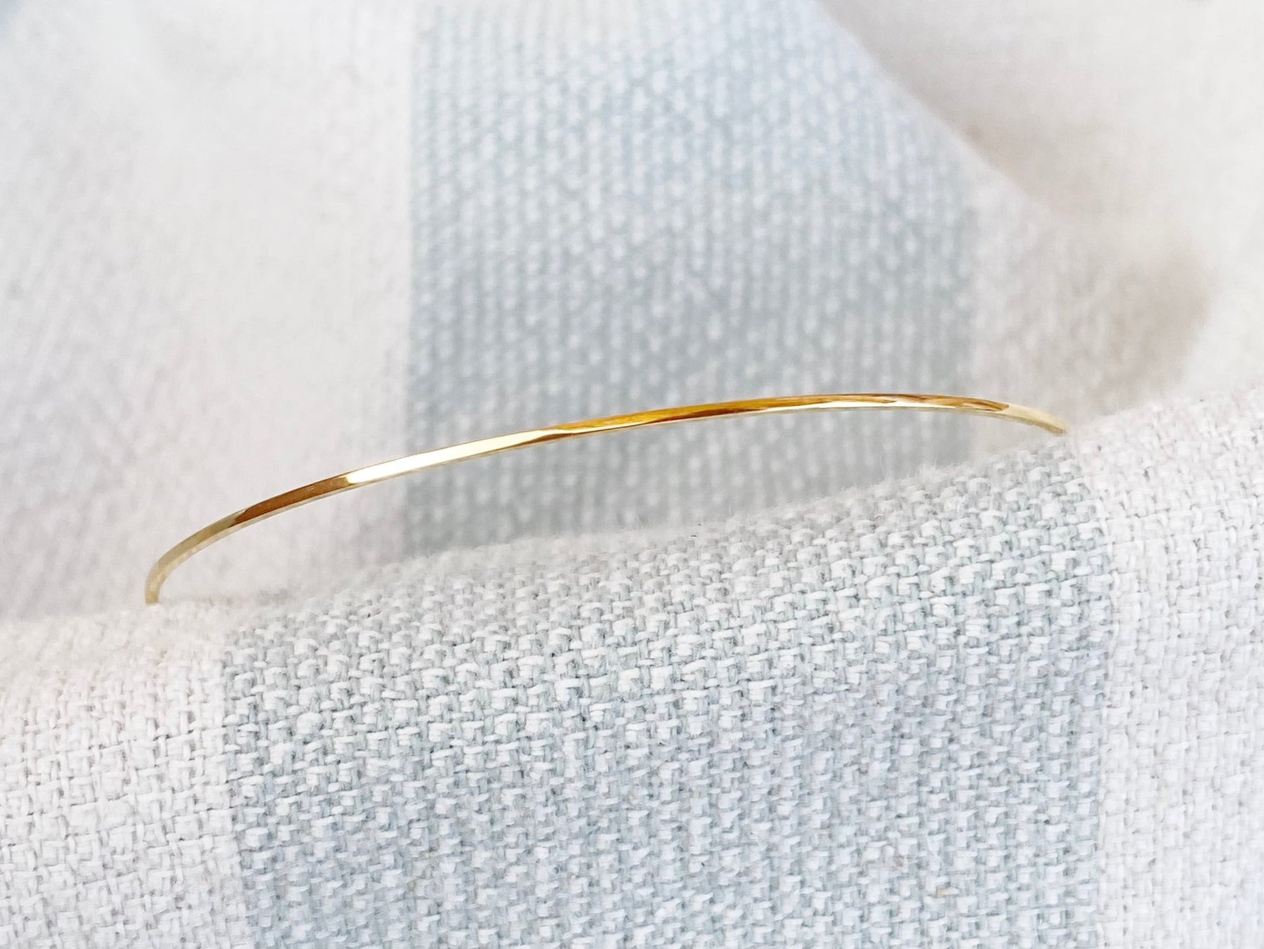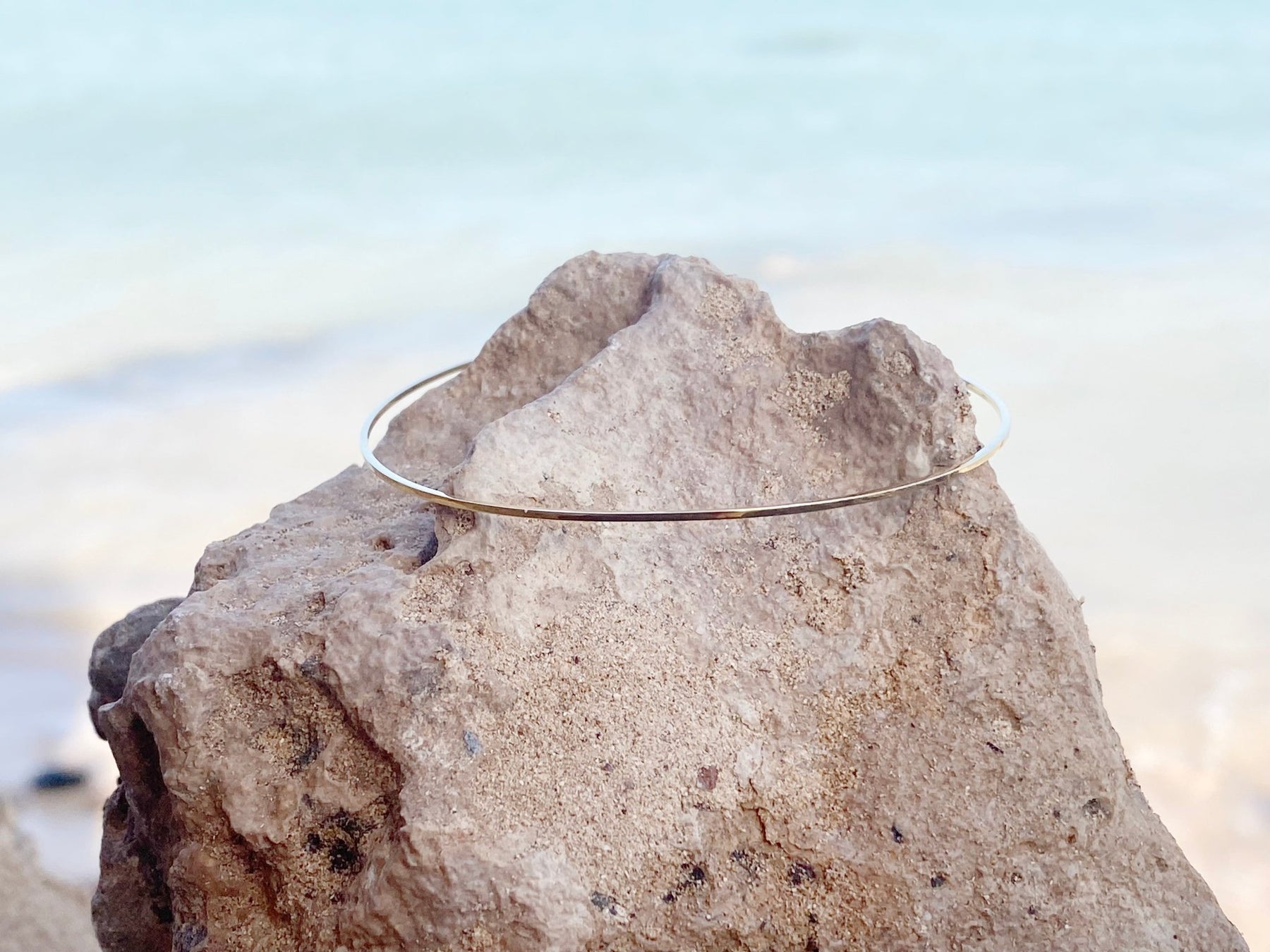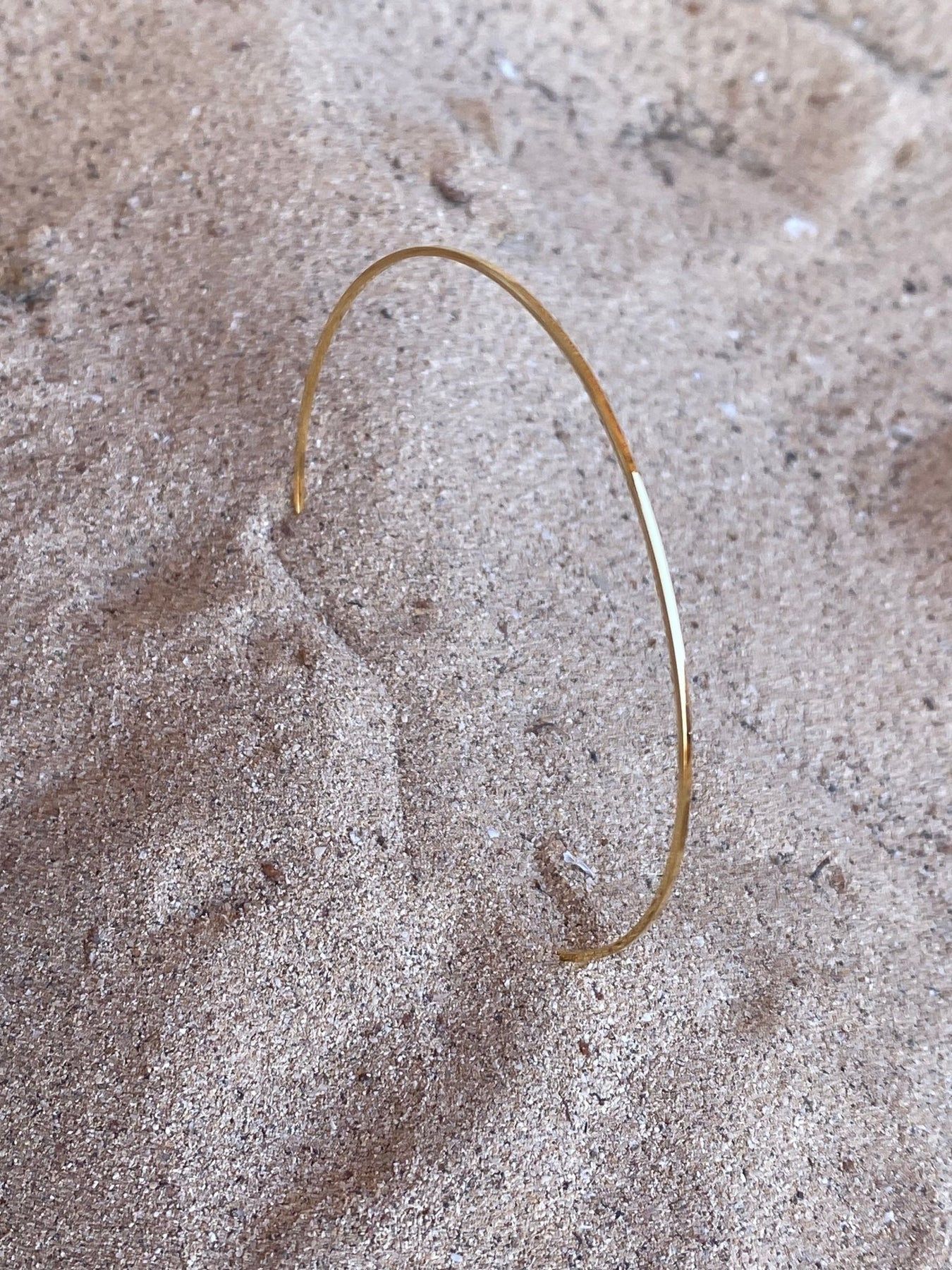 Mit einer Breite von nicht mal einem Millimeter ist der wasserfeste, eckig gewalzte Armreif nicht mehr und nicht weniger als ein zarter Hauch von Gold! Wunderschön für alle, die es ebenso filigran wie besonders mögen.