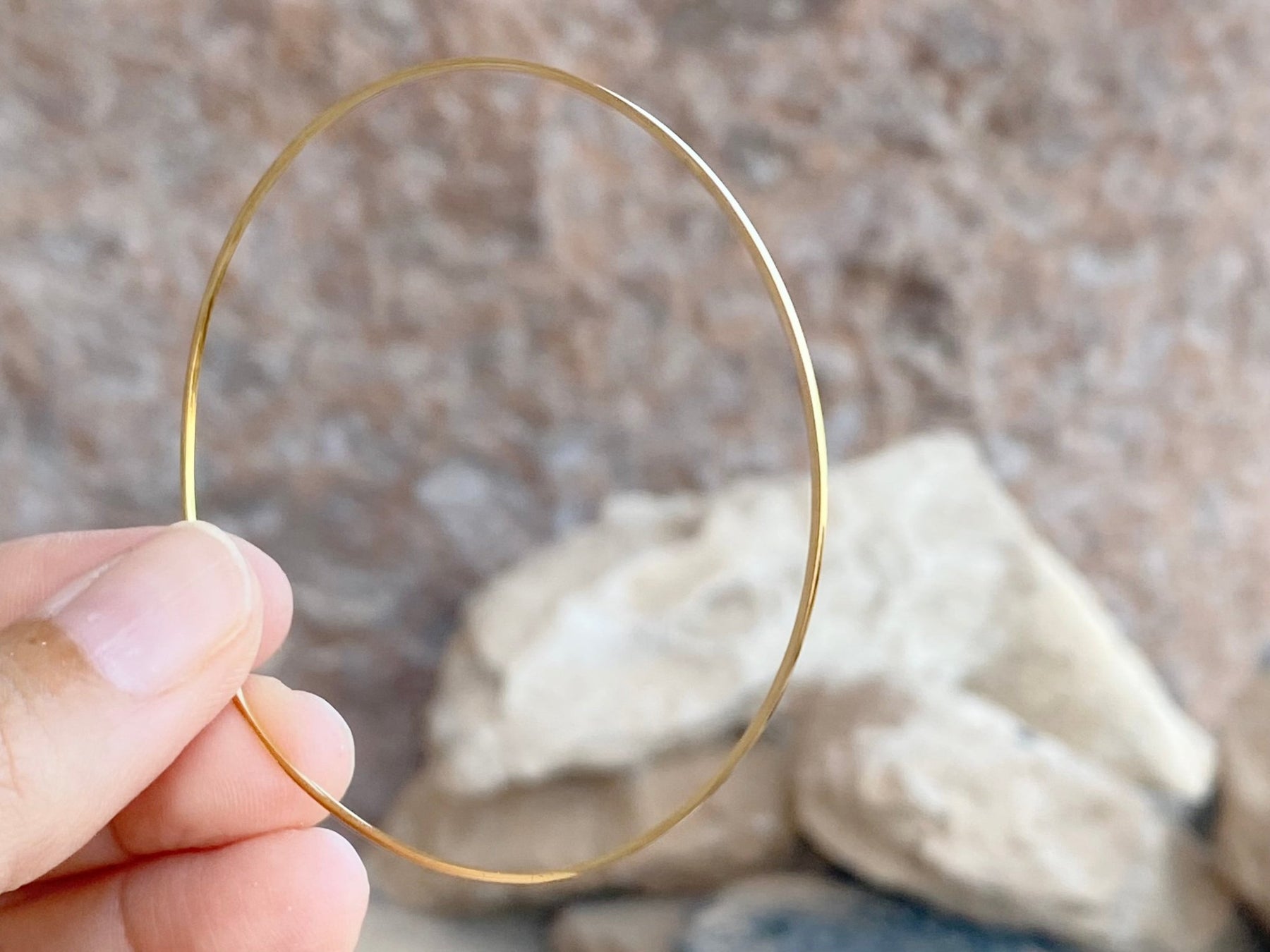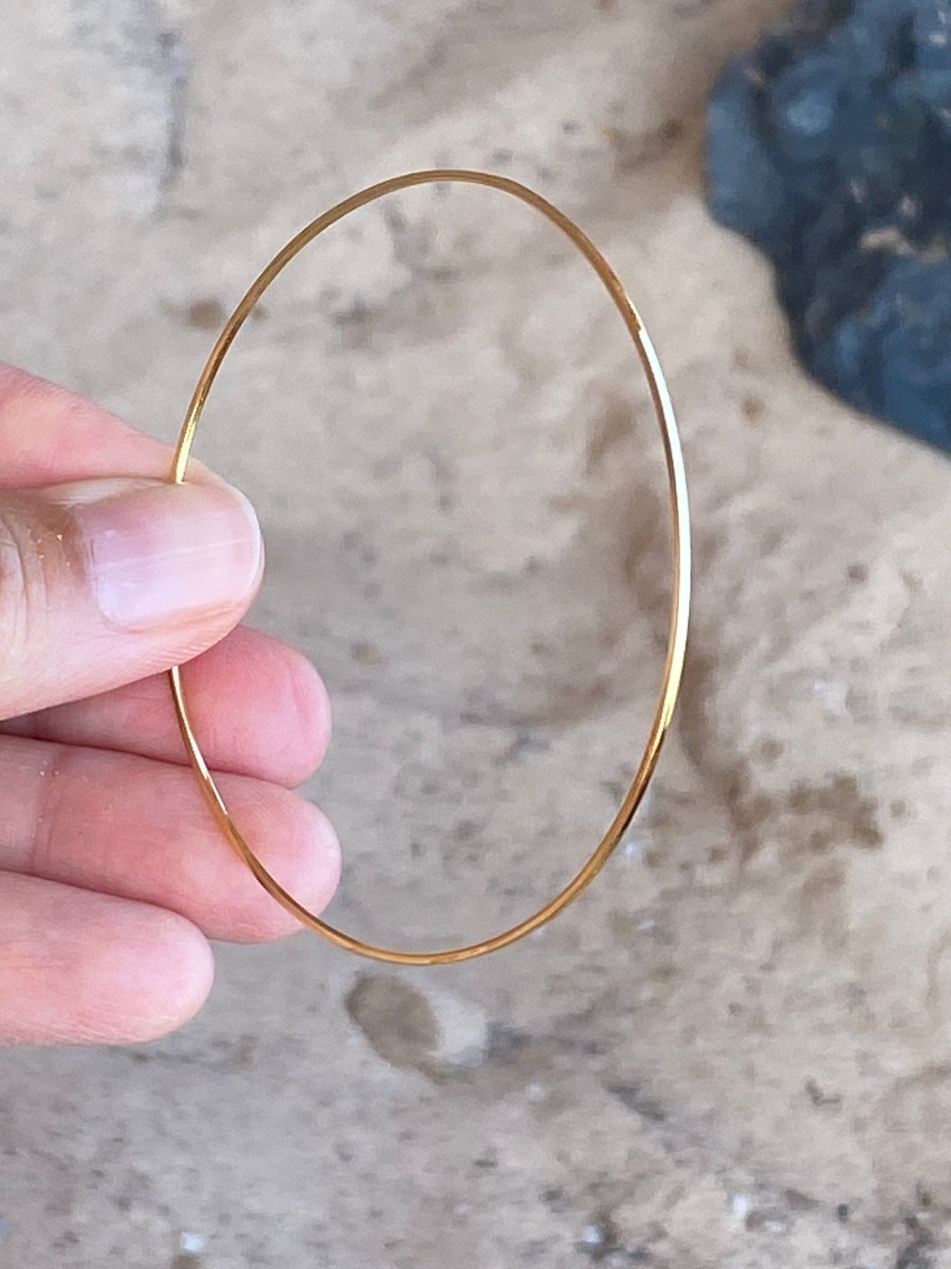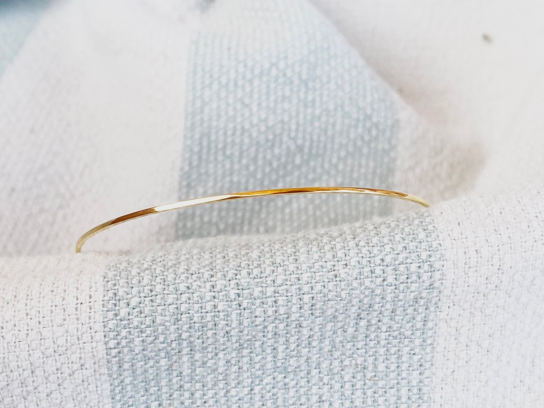 Mit einer Breite von nicht mal einem Millimeter ist der wasserfeste, eckig gewalzte Armreif nicht mehr und nicht weniger als ein zarter Hauch von Gold! Wunderschön für alle, die es ebenso filigran wie besonders mögen.