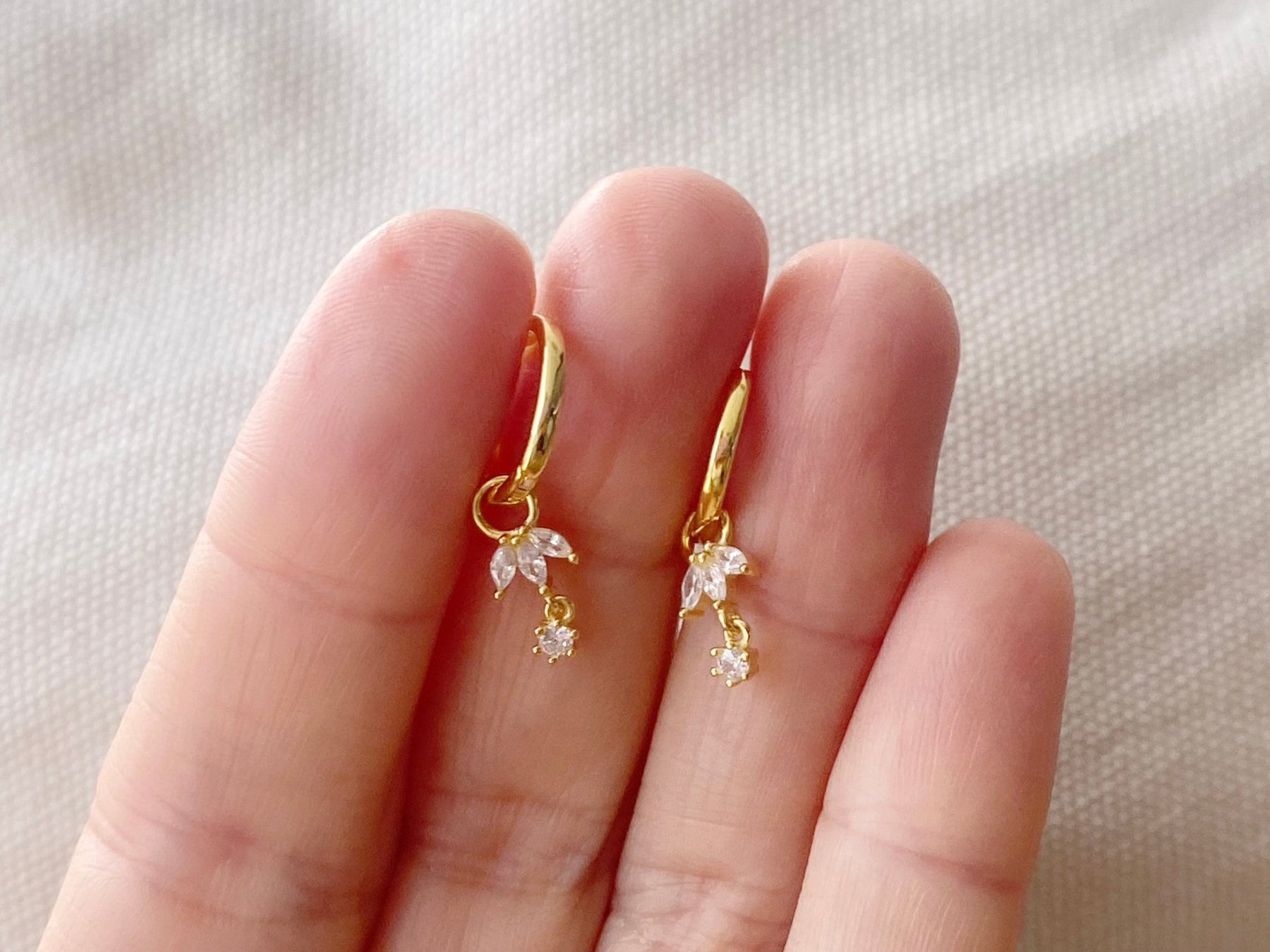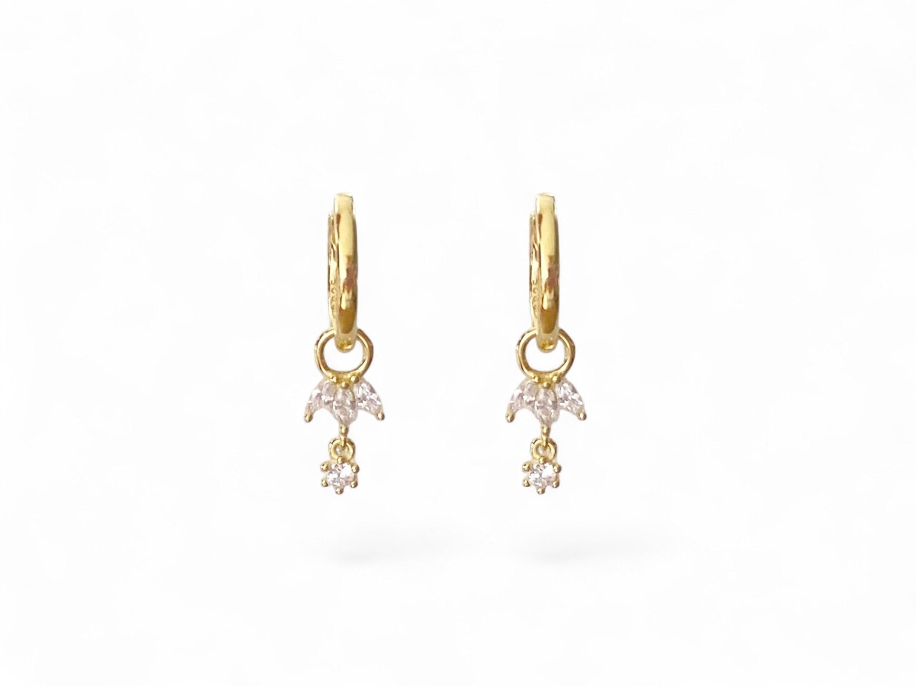Goldene Huggies mit glitzernden Charms: Die kleinen Creolen mit den Kristall Anhängern bringen einen Hauch Glamour in dein Outfit und setzen dein Gesicht liebevoll und verspielt in Szene. Gefertigt aus hochwertigen Materialien und fest vergoldet sind die kleinen Ohrringe der perfekte Begleiter für jede Lebenssituation - ein wenig Glitzer und Happiness, nicht zu viel und nicht zu wenig!