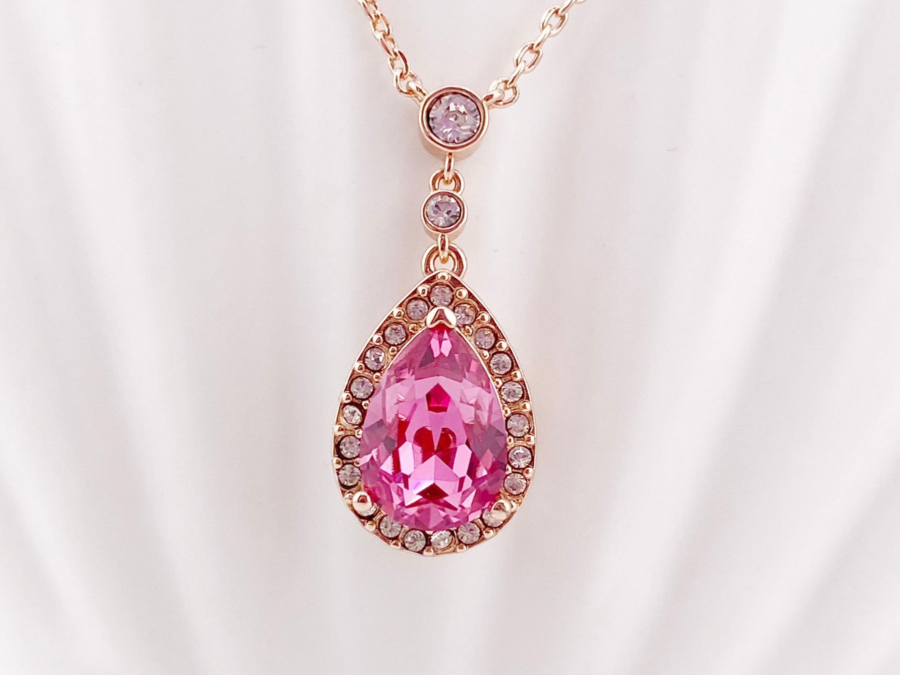 Rosegold trifft auf pure Romantik! Der pinke Glastropfen funkelt als Blickfang an den zarten Gliedern der roségoldenen pink Crystal Halskette - perfekt für Dates, Partys, Hochzeiten oder immer dann, wenn du stilistisch einen besonderen Akzent setzen möchtest.