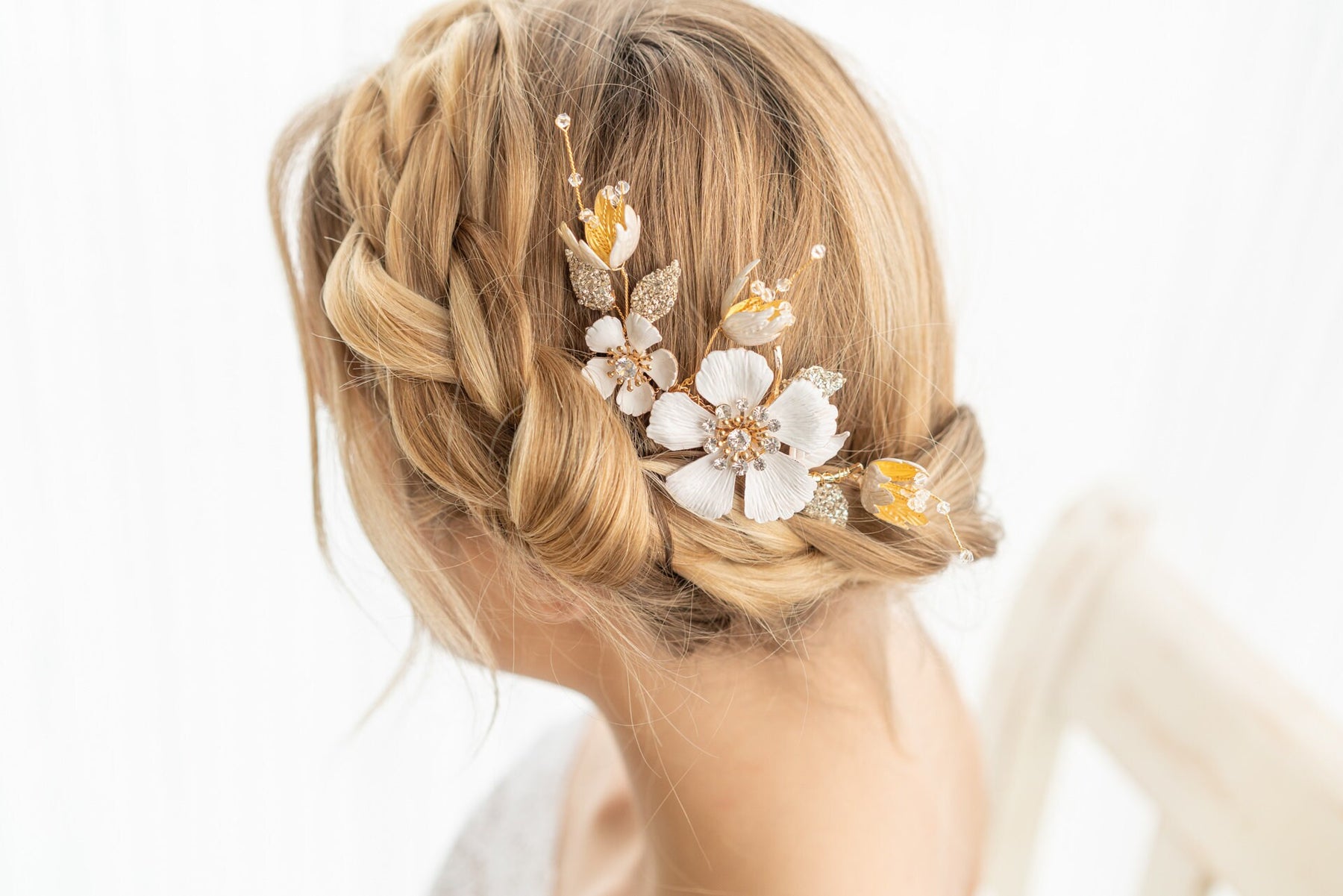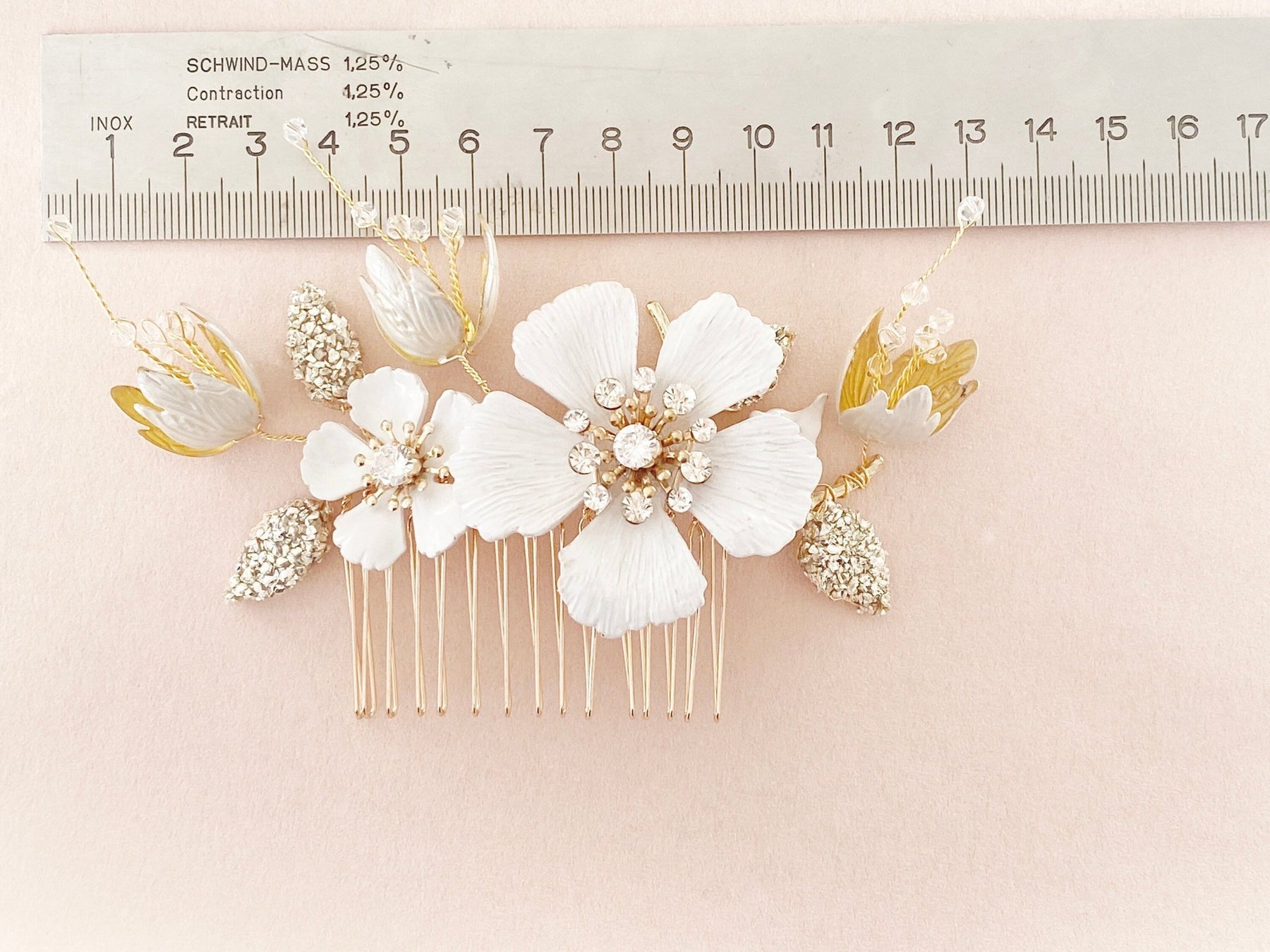 A work of art in hair jewelry for the most beautiful day of your life: This stunning floral comb can be incorporated into the bride's hairstyle, either at the side or the back of her head, making it a beautiful eye-catcher on her wedding day. Handmade, elegant, high-quality, and truly unique!