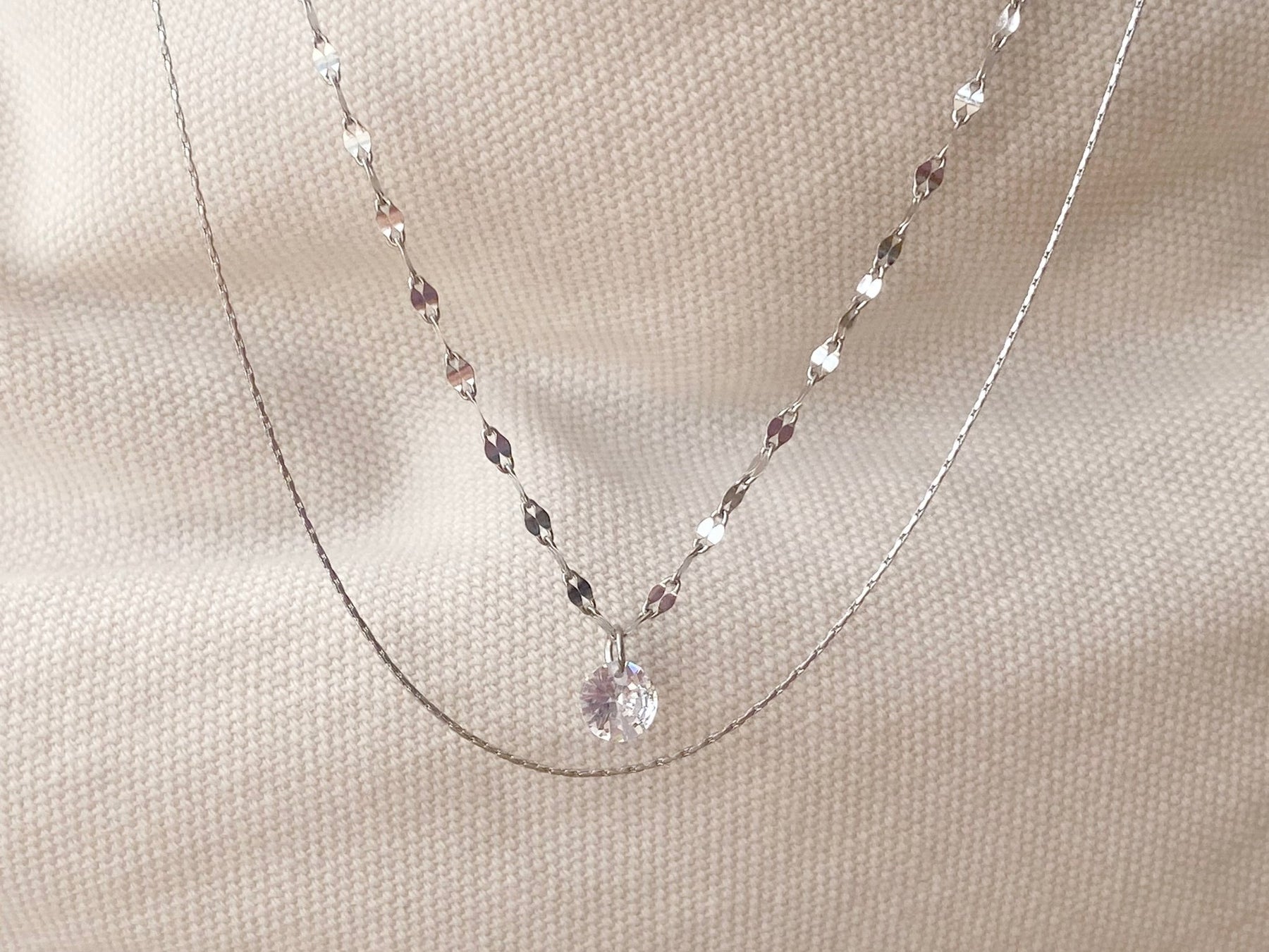 Silver double chain with crystal