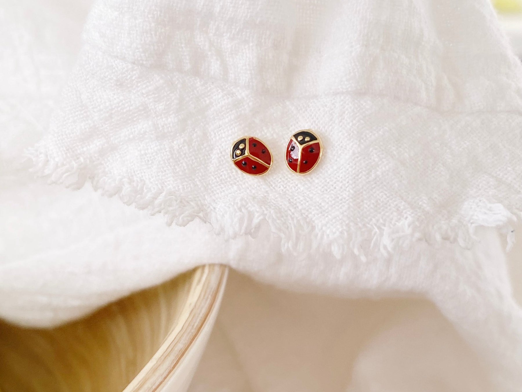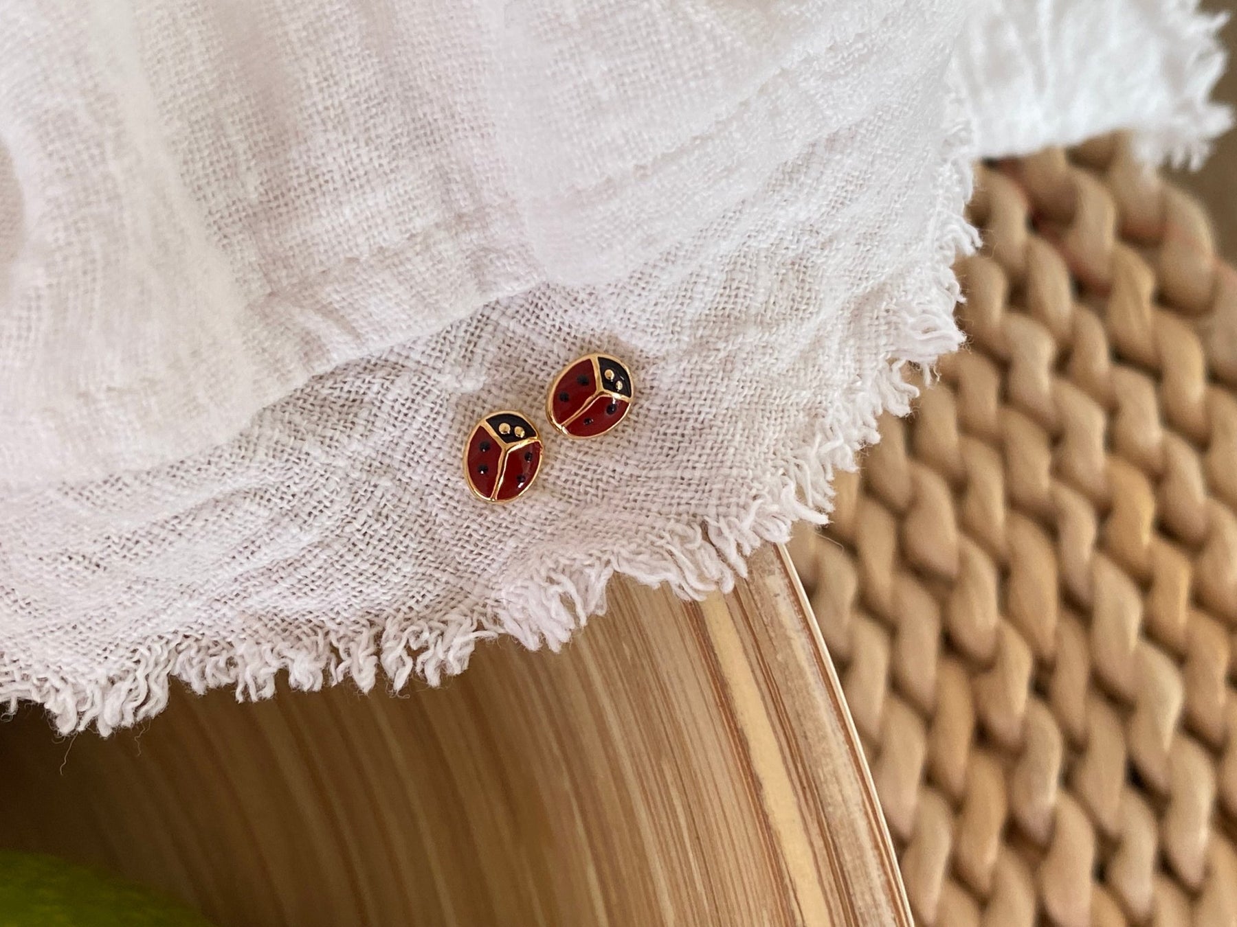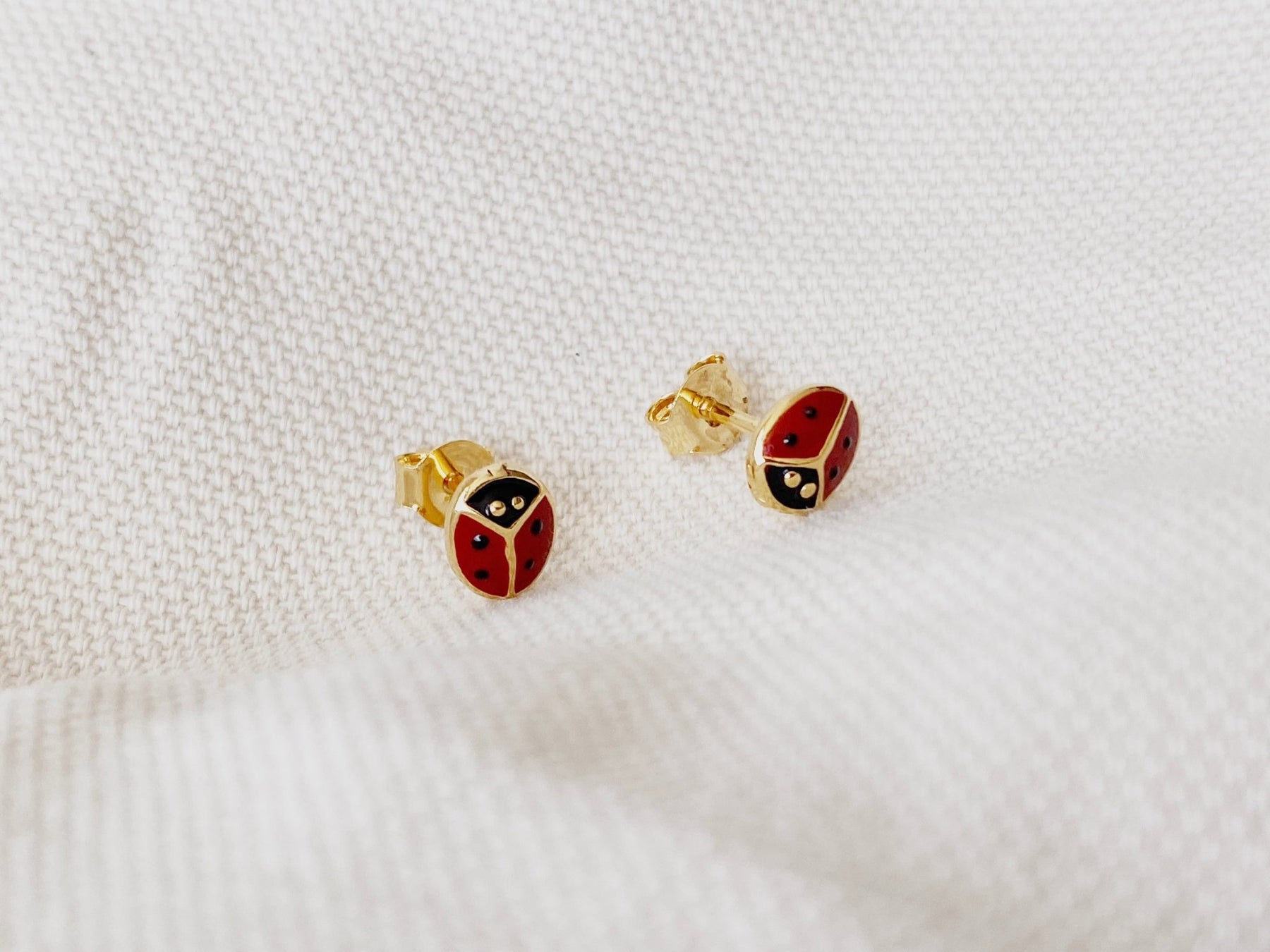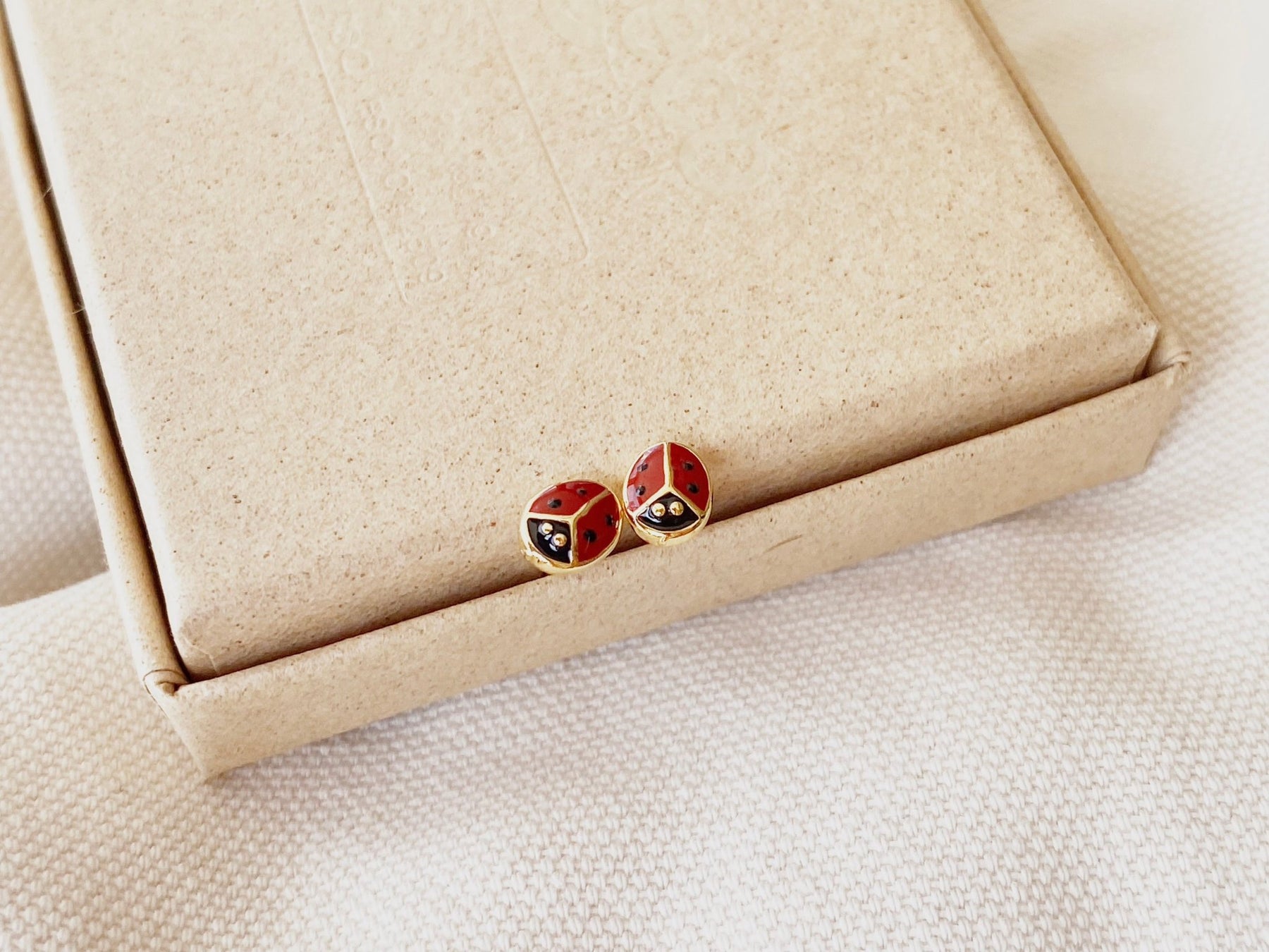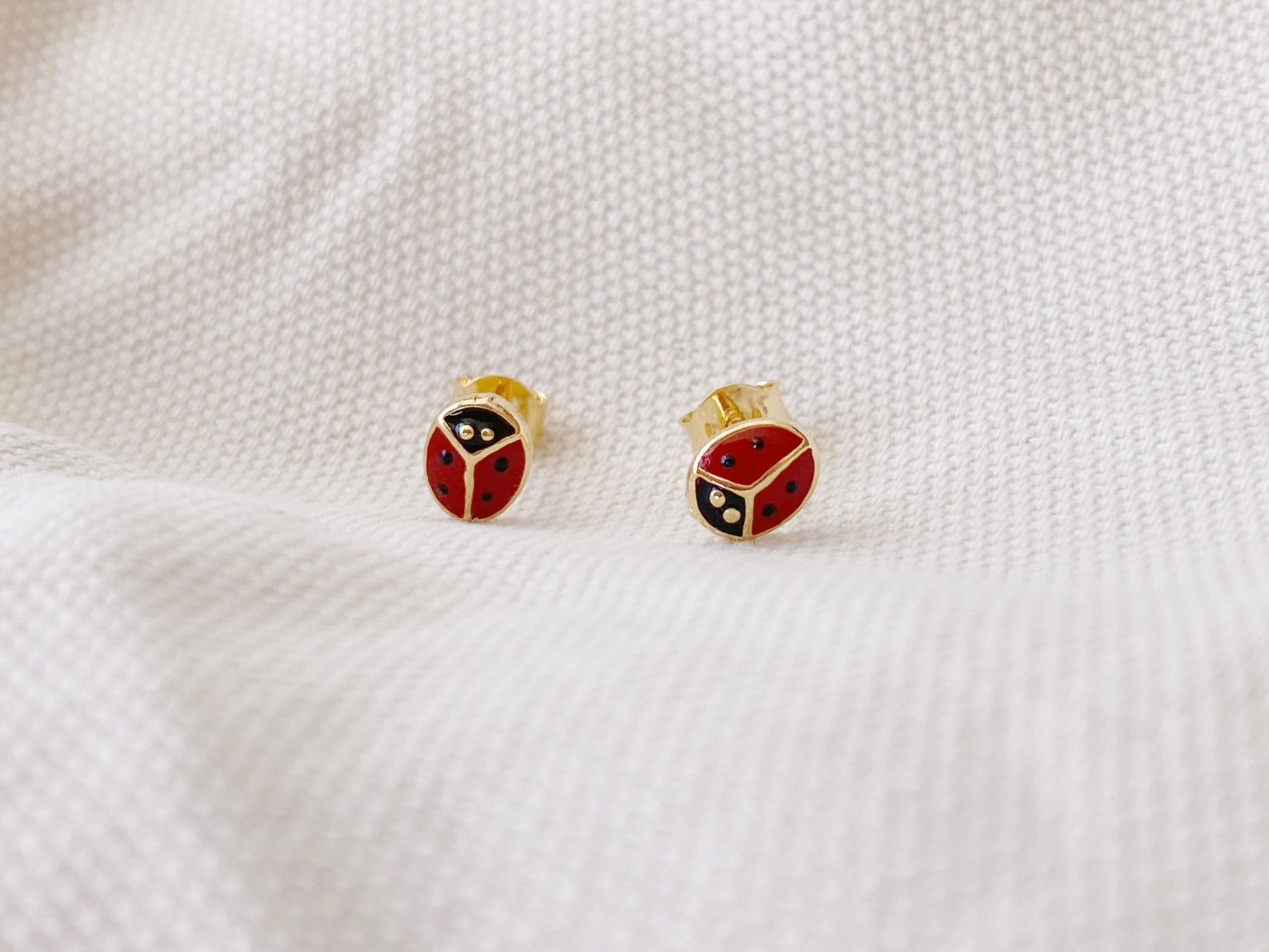 Ein echter Kinderschmuck Klassiker! Zwei kleine schwarz gepunktete Marienkäfer sitzen auf hochwertig vergoldeten Steckern, die nicht nur stabil sind, sondern auch hypoallergen und damit perfekt geeignet für sensible Haut. Ein Glücksbringer und eine wunderschöne Geschenkidee für kleine und große Kinder!